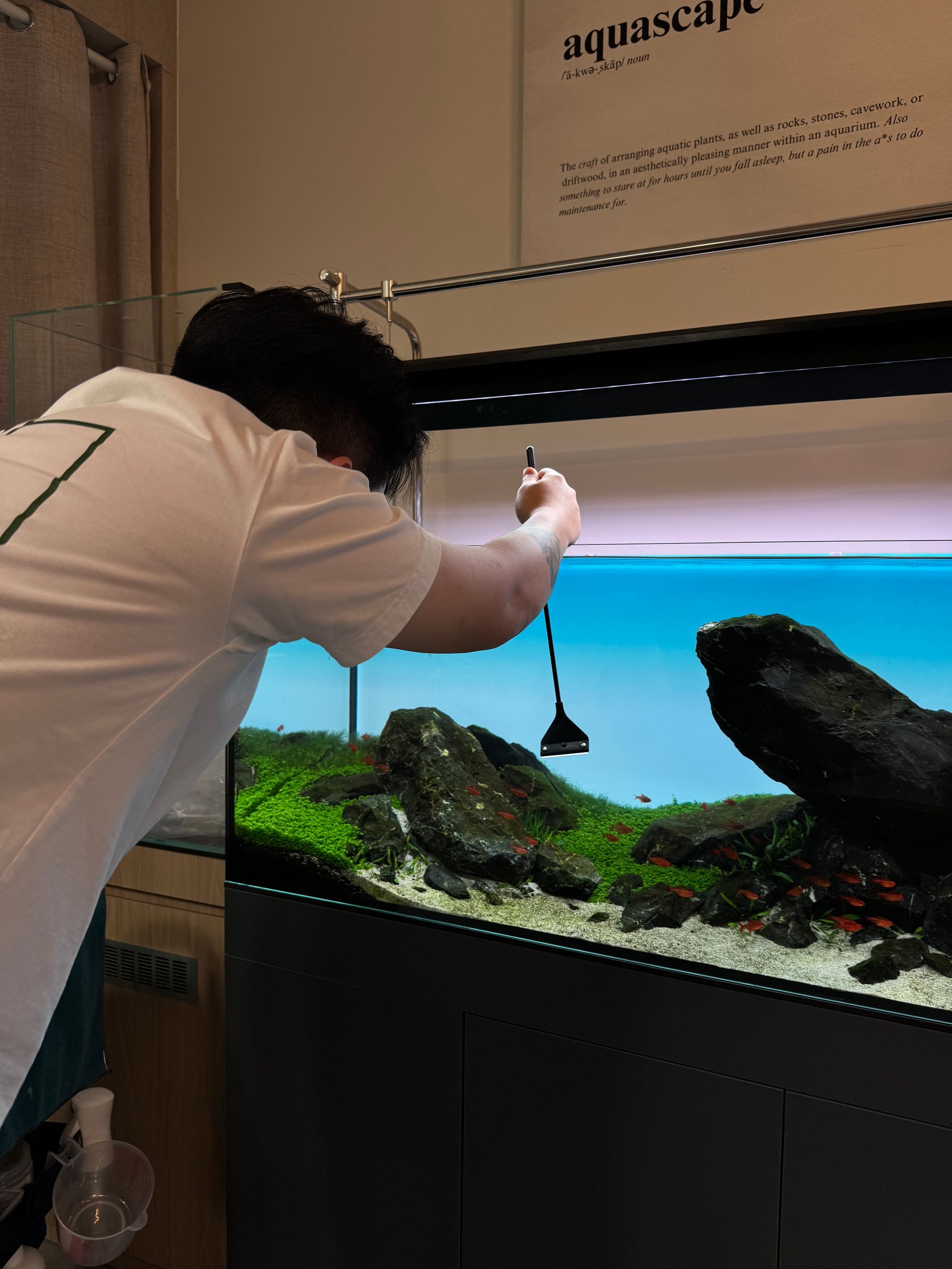 Maintain the beauty of your aquascape with regular trimming, water testing, and algae control. Our service ensures crystal-clear water, vibrant plants, and a layout that stays true to your original design.
